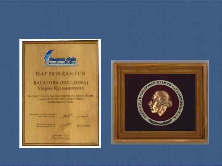 Награды Марии Кузьминичны Волдиной (Вагатовой) в области литературы.