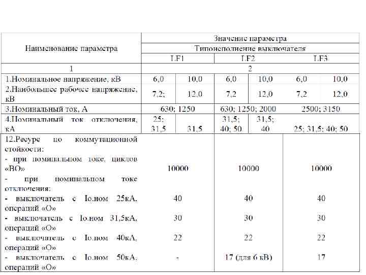 Прочие параметры • собственное время отключения tсв, с 0, 035… 0, 05 с (у вакуумных меньше, у элегазовых больше) • полное время отключения tов, с 0, 055… 0, 08 с (у вакуумных меньше, у элегазовых больше) • ресурс по механической стойкости Nм, циклов 10 000… 100 000 циклов (у элегазовых меньше, у вакуумных больше) • ресурс по коммутационной стойкости Nк, циклов 76