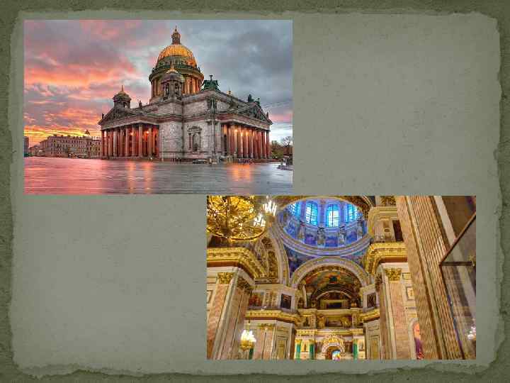 Исаакиевский Собор На месте современного Исаакиевского собора была построена деревянная церковь в 1710 году. Она была посвящена Исаакию Долматскому. На месте старенькой церквушки 26 июня 1818 года был заложен Исаакиевский собор. Строительство было доверено французскому архитектору О. Монферрану. Из-за небольшого архитектурного опыта Монферрану в помощь была создана специальная комиссия. В комиссию входили: А. И. Мельников, В. П. Стасов и другие. Исаакиевский собор был построен в 1842 году, однако освятили новый собор лишь в 1858 году. Это во многом было связано с продолжительными внутренними отделочными работами. Над внутренним интерьером Исаакиевского собора работал такой мастер, как И. П. Витали.