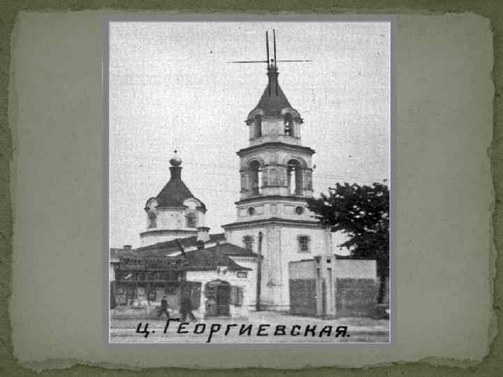 Георгиевская церковь в Орле Этот православный храм в честь святого великомученика Георгия Победоносца. Изначально храм был деревянным, построенным из дуба. Он имел вид обыкновенной избы с приподнятою крышею. Георгиевская церковь была расположена на так называемой Егорьевской горе. В 17261732 гг. на месте разрушенного храма возводится каменная Сретенская церковь, при которой имелся придел в честь великомученика Святого Георгия. В 1888 году утверждается проект перестройки храма, в который включается строительство новой колокольни. В том же году был расширен правый придел храма, освященный в 1835 году в честь иконы Божией Матери Иверской, а в 1889 году построена новая колокольня с боковыми пристройками и расширены приделы. Колокольня Георгиевской церкви была видна из любой точки города. В 1930 году храм был официально закрыт, а в 1946 году он был перестроен в кинотеатр. С 1990 -х годов о статусе здания кинотеатра идут споры, а храм до сих пор остается не восстановленным.