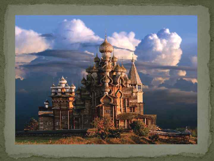 Кижи Шедевральному храмовому комплексу в Кижах предшествовали более скромные деревянные церкви Преображенье Спасово и Покров Святой Богородицы. В 1714 году был построен уникальный в архитектурном плане Преображенский храм. Он поражал своим великолепием и изяществом. Конструкция храма была полностью выстроена из дерева, у храма насчитывалось 22 купола. Кроме Преображенской церкви в храмовый комплекс Кижей входила Покровская церковь, которая была построена в 1764 году, а также колокольная возведенная в 1874 году и располагающаяся между двумя храмами.