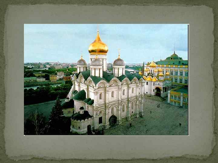 Архангельский Собор Изначально на месте Архангельского собора был возведен храм Михаила Архангела из белого кирпича в 1333 году по указу Ивана Калиты, который был в нем же захоронен в 1340 году. Старый храм был разобран в 1505 году. Строительство нового собора было поручено итальянскому архитектору Алевизу Фрязину. Стройка собора была завершена в 1508 году, однако к росписи храма мастера приступили, по всей видимости, только в 1652 году. Роспись собора была обновлена после 1812 года. Также в это же время был заменен иконостас.