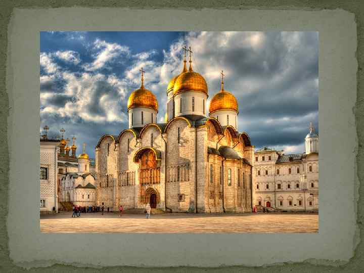 Успенский собор Начало строительства Успенского собора относится к 70 -м годам XV века. Князь московский Иван III пригласил руководить стройкой собора мастеров И. Кривцова и Мышкина. Но собор возводимый ими неожиданно рухнул в 1474 году. Руководство строительством собора перешло к итальянским мастеру Аристотелю Фиорванти привез на Русь множество инновационных идей в сфере строительства различных зданий. Так, например, при Фиорванти на стройке Успенского собора начал впервые применяться густой раствор, а также практиковались такие строительные методики, как чередование белого камня и кирпича, своеобразная укладка кирпича. В 1479 году Успенский собор в Москве был освящен, а в 1481 году мастера приступили к его росписи. Росписью занимался знаменитый живописец Дионисий со своими учениками. Пожар 1626 года сильно повредил рукопись Дионисия. В 1642 году Успенский собор было приказано расписать по-новому. Новые мастера превзошли своего предшественника и создали колоритные шедевральные росписи. В Успенском соборе хранилась икона Владимирской Божьей Матери - одна из главных святынь на Руси. В 1551 году в соборе был установлен так называемый «Мономахов Трон» , а в XIV веке Успенский собор украсили ворота, созданные балканскими мастерами.