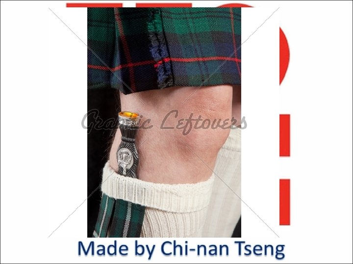 1. kilt n. 蘇格蘭裙 2. tailor v. 量身訂做 3. garment n. 衣服 4. wrap v. 把(人、物)包,裹 (在……裏) 5. overlap v. 重疊 6. loose adj. 鬆垮的 7. twist v. 扭曲 8. bulging n. 突出,鼓 起 9. buckle v. 用扣環扣住 10. formalize v. 安 排;使正式化 11. accessory n. 配件,附件 12. elaborate adj. 精心製作的 13. ornament v. 裝 飾 14. sporran n. 毛布袋 15. Gaelic adj. 賽爾特 人的,賽爾特語的 16. pouch n. 小袋