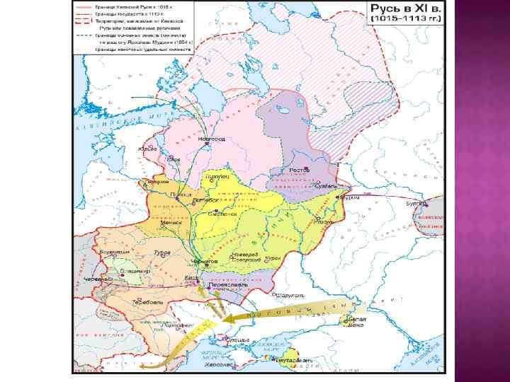 1015 г. Великий князь Владимир Святославович скончался. Но еще до его смерти появились предпосылки междоусобицы. 1) У Владимира было много сыновей 2)Еще до смерти Владимира, Ярослав (который сидел в Новгороде) перестал платить Киеву дань. После смерти Владимира отделился Новгород Перестала уплачивать дань Тмутаракань Полоцк тоже сбросил власть Киева. Власть в Киеве захватил Святополк (а править должен был Борис).