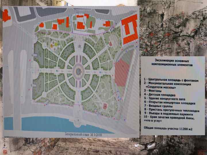 Основная идея проекта – создание памятника исторической застройке г. Москвы. Путём : восстановления сети исторических улиц района Зарядье и его рельефа. Памятник городу создаётся посредством разбивки на этом месте парка «Зарядье» . Сеть исторических улиц воссоздаётся аллеями парка. Название аллей парка – по названию существующих ранее улиц. Пластика жилой застройки осуществляется посадкой зелёных насаждений, за счёт применения разных пород деревьев и кустарников.