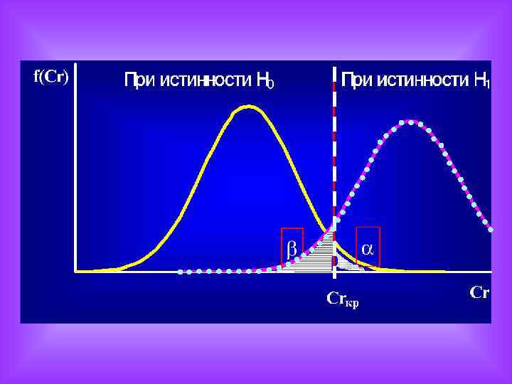 Решающее правило Если рассчитанное по x 1, x 2, . . . , xn фактическое значение критерия (Crф ) попадает в область правдоподобных значений, то гипотеза допускается если в критическую область неправдоподобно малых значений (ограниченных сверху критическим значением Crкр. н ) или неправдоподобно больших (ограниченных снизу Crкр. в ) гипотеза отклоняется