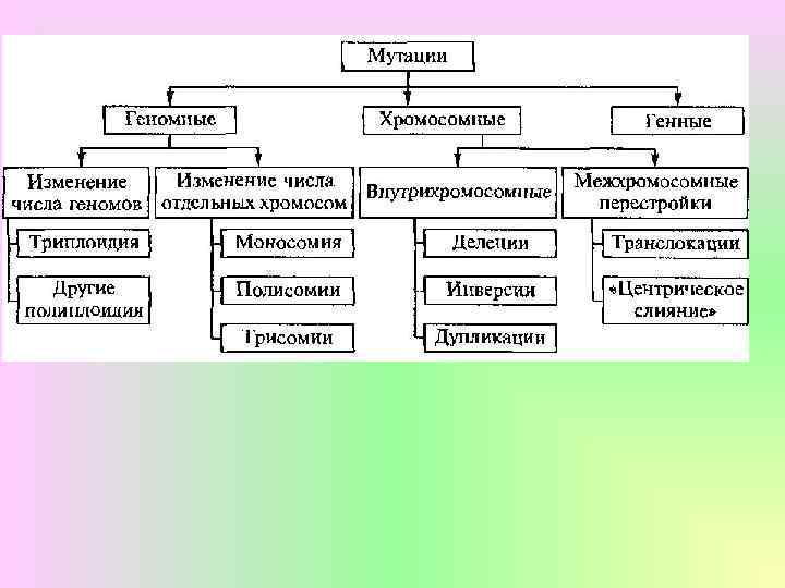 Изменчивость Ненаследственная Фенотипическая Модификационная Генотипическая Наследственная Цитоплазматическая Генотипическая происходит с ДНК находящейся в ядре клетки Комбинативная Мутационная Генетический материал хромосомного набора (генотип) Цитоплазматическая связана с ДНК и РНК находящейся в цитоплазме клетки. ДНК митохондрий и пластид Генетический материал цитоплазмы (плазмон)