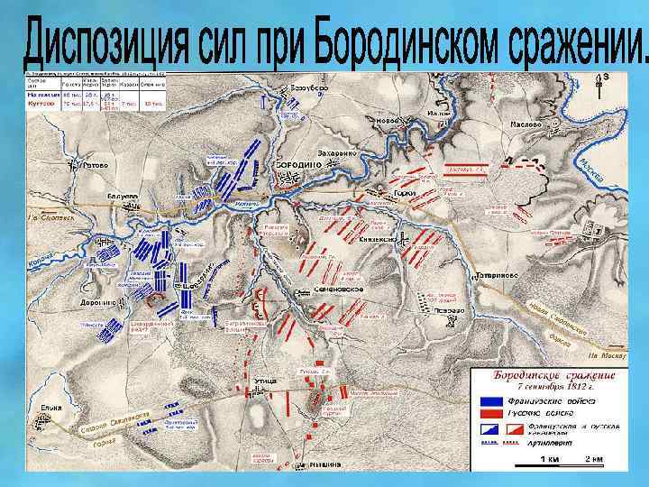 Русские Французы 150 000 человек. 640 орудий. 130 – 135 000 человек. 587 орудий.