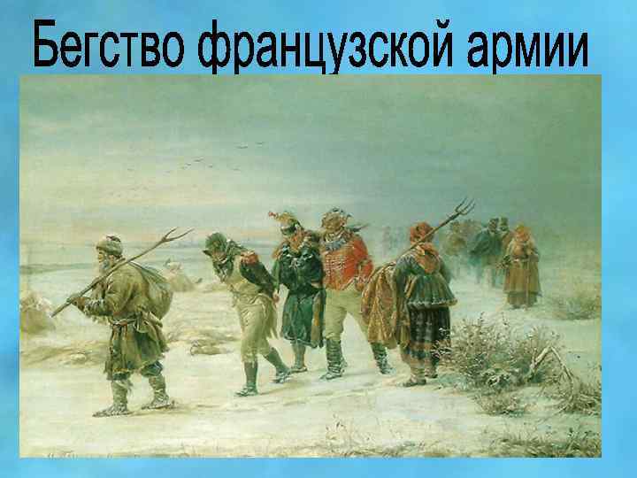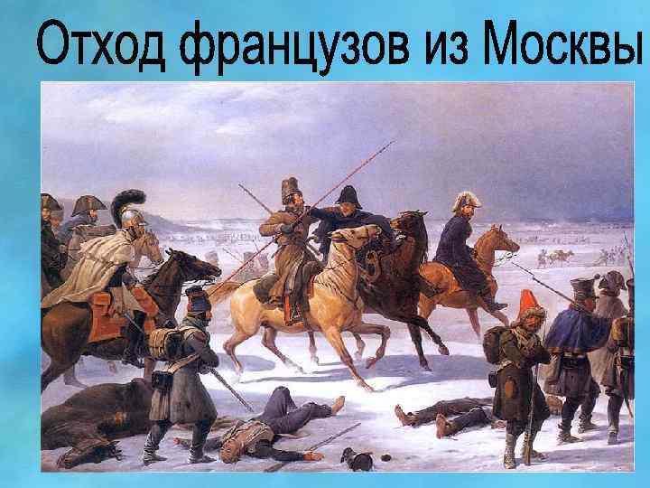 • В декабре 1812 года Кутузов докладывал царю: « Война окончилась за полным истреблением противника» . • 25 декабря Александр l издал манифест об изгнании врага из России.