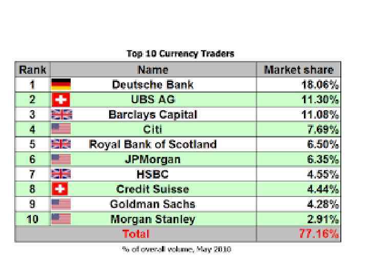 Notowanie walut • Cena waluty nazywa się notowaniem. Na rynku istnieją notowania: bezpośrednie i pośrednie. • Notowanie bezpośrednie to cena jednego dolara amerykańskiego w innej walucie. • Notowanie pośrednie to cena jednej JEDNOSTKI innej waluty w dolarach amerykańskich. • Uwaga: generalnie notowania większości walut są podawane w dolarach amerykańskich (tzn. – notowanie bezpośrednie). • Jednak EUR, GBP, AUD, NZD są notowane pośrednio, na przykład: GBP/USD