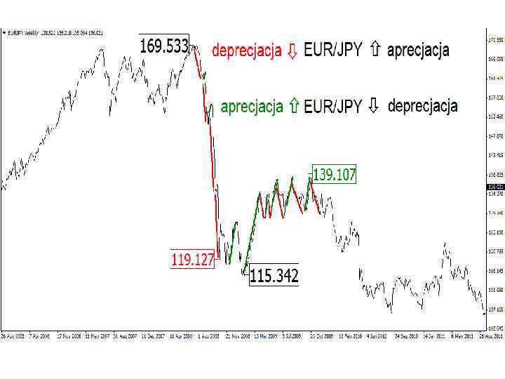 Zmiany kursów dewaluacja - skokowe, administracyjne zmniejszenie międzynarodowej wartości waluty rewaluacja - skokowe, administracyjne zwiększenie międzynarodowej wartości waluty deprecjacja - spadek międzynarodowej wartości waluty aprecjacja - wzrost międzynarodowej wartości waluty