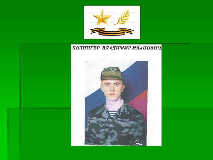 § Волгин Виктор Петрович, старший сержант. § Родился 22 марта 1980 г. в с. Красноярка Татарского района Новосибирской области. В марте 1998 г. призван Татарским ОГВК во внутренние войска МВД РФ. Окончил школу сержантского состава. § В составе своего подразделения в должности командира автомобильного отделения с января по март 2000 г. участвовал в боевых действиях против незаконных вооружённых формирований в Северо-Кавказском регионе. § § Проживает в с. Красноярка Татарского района.