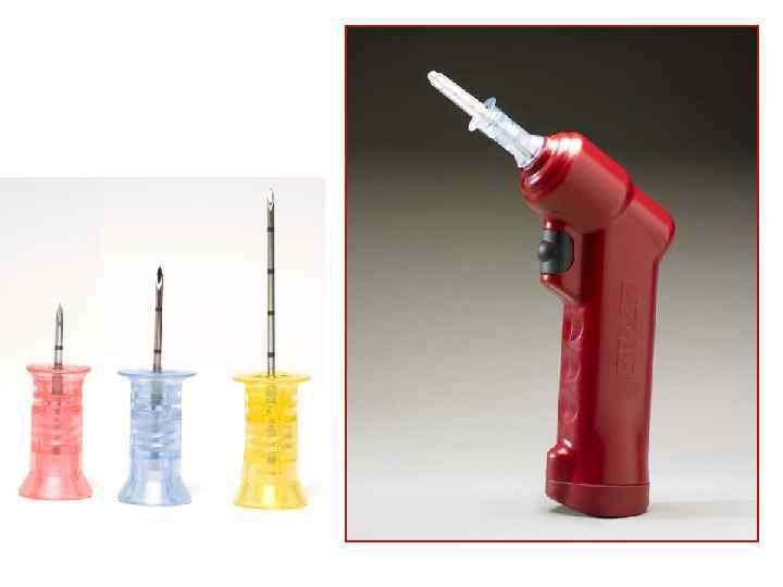Локализация пункции Дети до 6 лет: Дети от 6 до 12 лет: A. Медиальнее бугристости большеберцовой кости A. Медиальнее бугристости бедра B. Над медиальной лодыжкой C. Головка плечевой кости 2 -3 cm 1 -3 cm