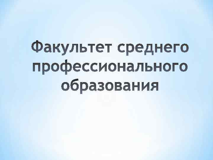 * 18 мая 2011 года в «Курской ГСХА имени профессора И. И. Иванова» создан факультет среднего профессионального образования. *Учебный процесс преподаватели. реализуют высококвалифицированные *На факультете выстроена система студенческого самоуправления. * Созданы условия не только для учебной деятельности, но и для занятий спортом, художественной самодеятельностью, духовного и культурного совершенствования.