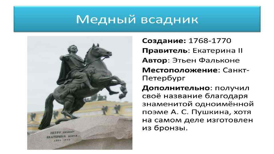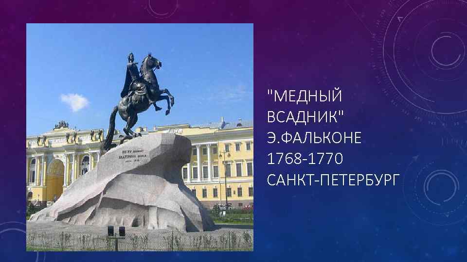 "МЕДНЫЙ ВСАДНИК" Э. ФАЛЬКОНЕ 1768 -1770 САНКТ-ПЕТЕРБУРГ