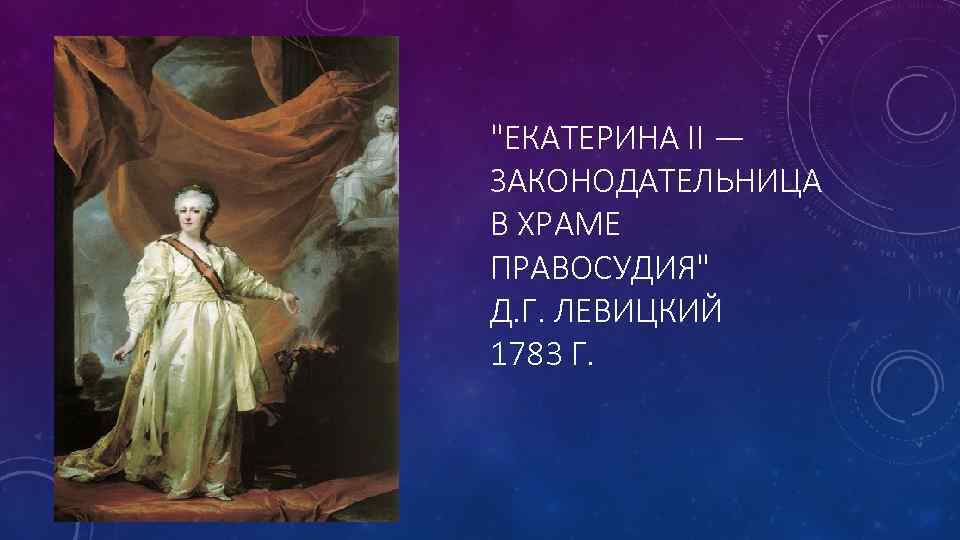 "ЕКАТЕРИНА II — ЗАКОНОДАТЕЛЬНИЦА В ХРАМЕ ПРАВОСУДИЯ" Д. Г. ЛЕВИЦКИЙ 1783 Г.