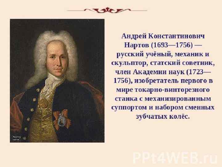 СТАНОК А. К. НАРТОВА (1729 ГОД)