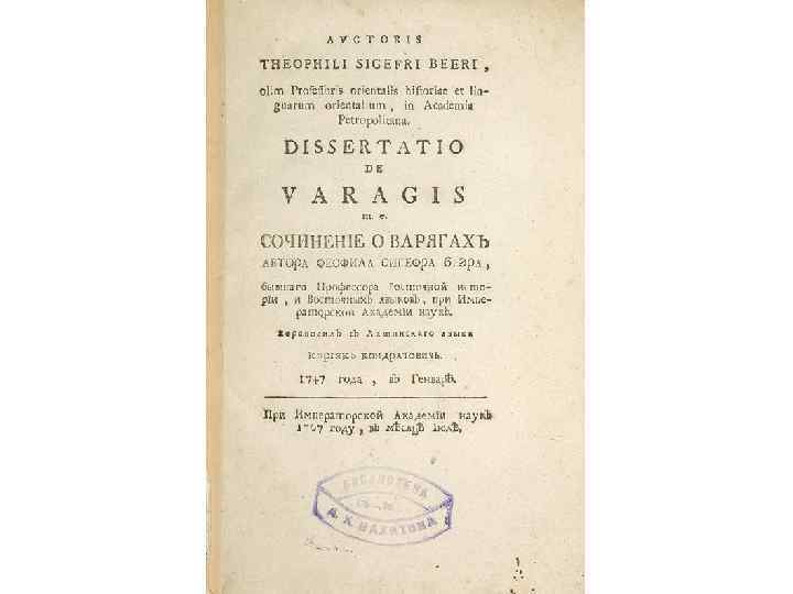 Г. З. БАЙЕР • НЕМЕЦ, ПО ПРОИСХОЖДЕНИЮ, ЕГО РОДИНА – КЕНИГСБЕРГ (СОВР. КАЛИНИНГРАД) • ОСНОВОПОЛОЖНИК НОРМАННСКОЙ ТЕОРИИ • ПЕРВЫЙ РОССИЙСКИЙ УЧЕНЫЙГУМАНИТАРИЙ • ПИСАЛ НА ЛАТЫНИ
