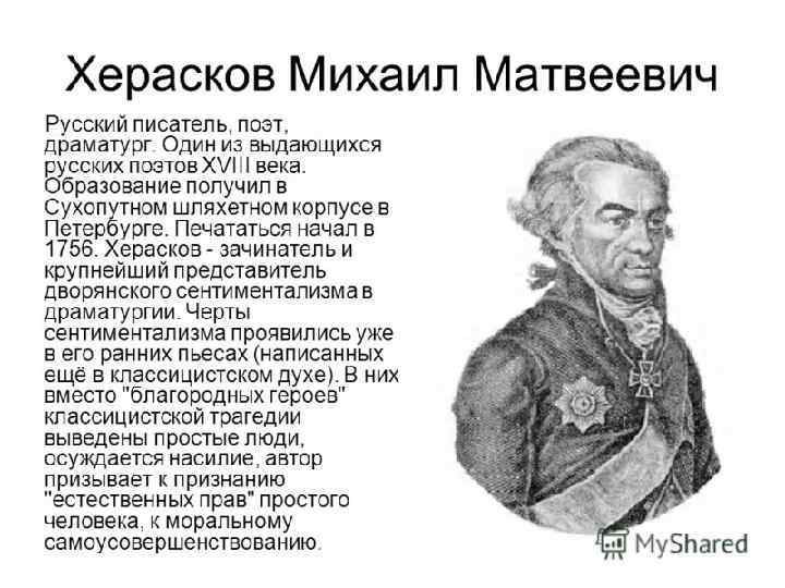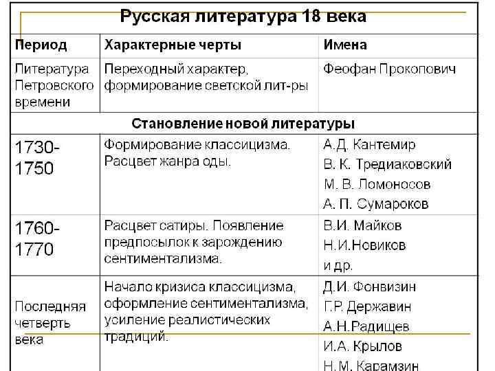ЛИТЕРАТУРА • ПОЭТ-ТЕОРЕТИК В. К. ТРЕДИАКОВСКИЙ – «НОВЫЙ И КРАТКИЙ СПОСОБ К СЛОЖЕНИЮ РОССИЙСКИХ СТИХОВ» • АКАДЕМИК И ПОЭТ М. В. ЛОМОНОСОВ – «ПИСЬМО О ПРАВИЛАХ РОССИЙСКОГО СТИХОТВОРСТВА» И «РИТОРИКА» • ДРАМАТУРГ А. П. СУМАРОКОВ – ВОСПЕЛ БЛАГОРОДСТВО И САМОПОЖЕРТВОВАНИЕ • ДРАМАТУРГ Д. И. ФОНВИЗИН - «БРИГАДИР» , «НЕДОРОСЛЬ» • КРУПНЕЙШИЙ ПОЭТ ЕКАТЕРИНИНСКОЙ ЭПОХИ – • Г. Р. ДЕРЖАВИН • СЕНТИМЕНТАЛИЗМ – Н. М. КАРАМЗИН «БЕДНАЯ ЛИЗА»