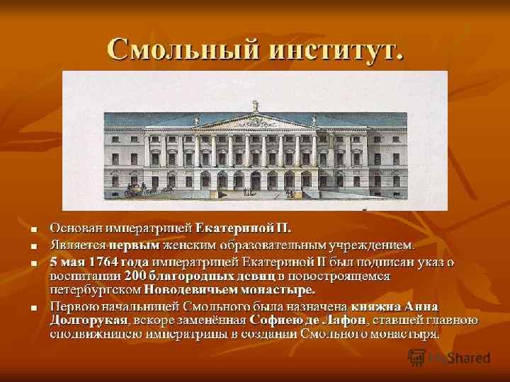 ОБРАЗОВАНИЕ И ПРОСВЕЩЕНИЕ • СОСЛОВНЫЙ ХАРАКТЕР • СУХОПУТНЫЙ ШЛЯХЕТСКИЙ КОРПУС (АННА ИОАННОВНА) – ТОЛЬКО ДВОРЯНЕ • 1751 Г. – МОРСКОЙ ШЛЯХЕТСКИЙ КОРПУС • 1759 Г. – ПАЖЕСКИЙ КОРПУС • С 4 -6 ЛЕТ ДО 18 -20 ЛЕТ В ОТРЫВЕ ОТ СЕМЬИ