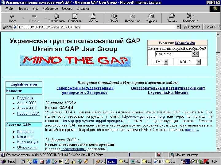 Как научиться работать с GAP ? • Методическое пособие и раздел «Изучаем алгебру с GAP» на сайтах Украинской группы пользователей GAP: http: //www. zsu. zp. ua/ukrgap/ и http: //ukrgap. exponenta. ru • Рассылка новостей группы: http: //subscribe. ru/catalog/science. exact. gap/ • Сайт системы: http: //www. gap-system. org