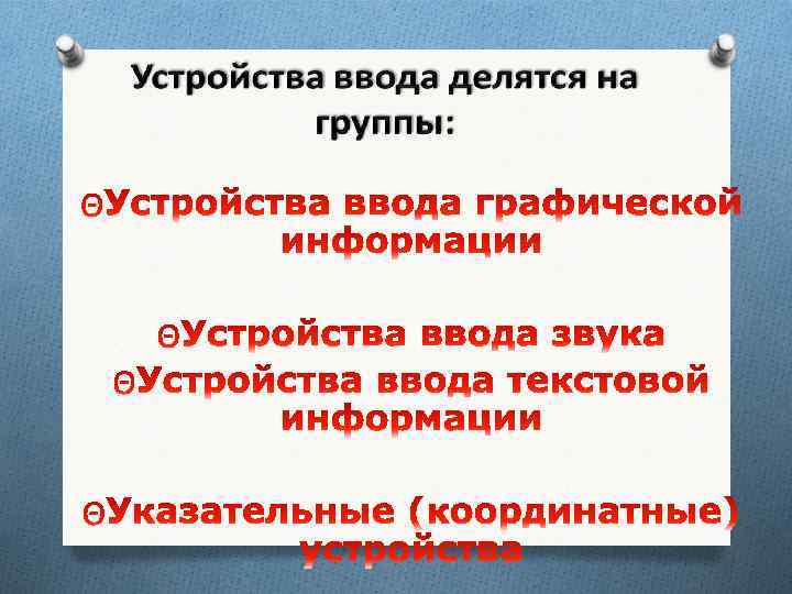 Устройства ввода приборы для занесения (ввода) данных в компьютер во время его работы.