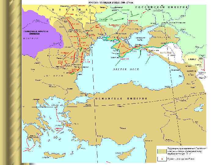 Итоги войны: q Ясский мир: Ø Россия присоединила территории между Бугом и Днестром Ø Турция признала присоединение Крыма к России и др. В результате двух войн Россия стала черноморской державой