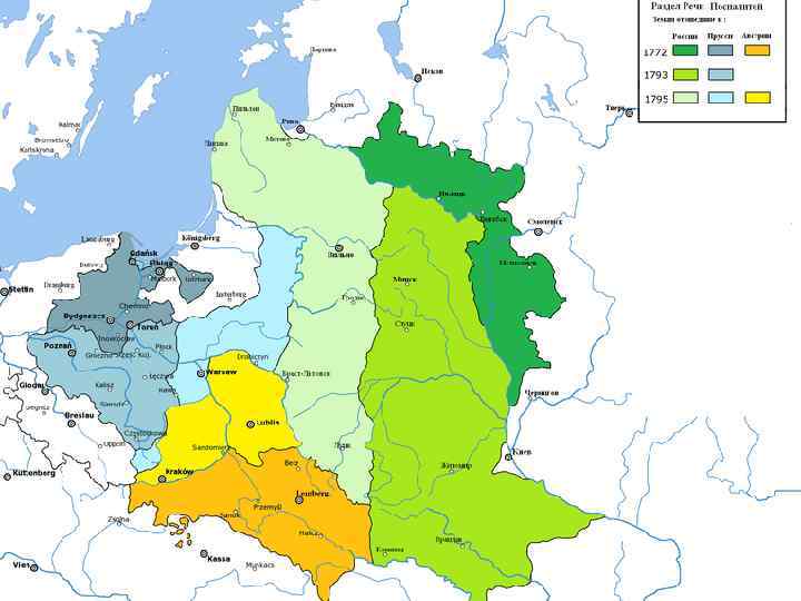 Участие России в разделах Речи Посполитой l Разделы: 1772, 1793, 1795 l Участники: Россия, Австрия, Пруссия l Итог: Россия получила Западную Белоруссию, Западную Волынь, часть Литвы l Речь Посполитая перестала существовать
