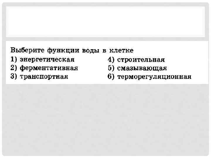 ВОДА • Является универсальным растворителем (все биохим. процессы протекают в водных растворах). Молекула полярна
