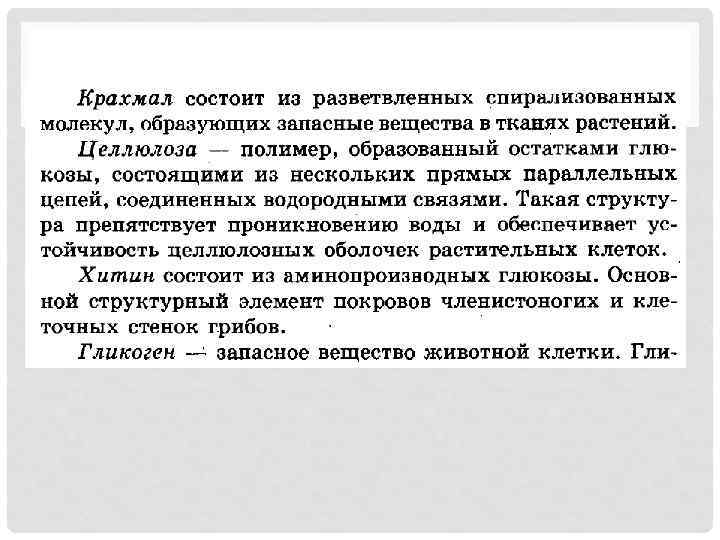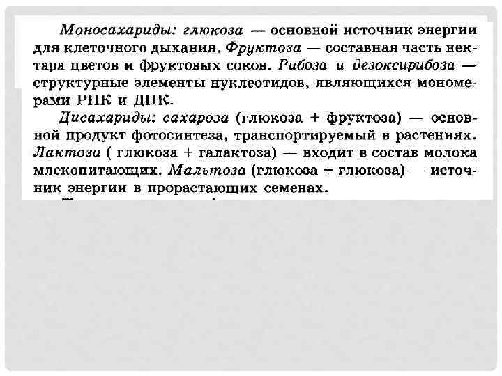 ФУНКЦИИ УГЛЕВОДОВ: • • • Энергетическая (1 г углеводов – 17, 6 к. Дж), Запасающая, Структурная, Сигнальная (рецепторная), Защитная (слизи), Рецепторная/сигнальная (гликокаликс на поверхности плазматической мембраны у животных клеток).