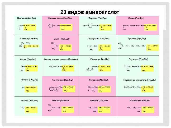 20 АМИНОКИСЛОТ В СОСТАВЕ БЕЛКОВЫХ МОЛЕКУЛ