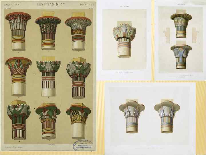 Египетские колонны а) Геометрические Б) папирусообразный с) лотосообразный
