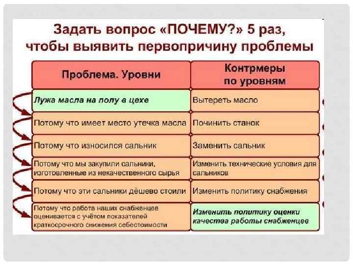 МЕТОД ПОИСКА ПРИЧИН ВОЗНИКНОВЕНИЯ ПРОБЛЕМ « 5 ПОЧЕМУ» ?