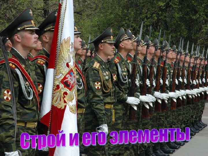 Строй - установленное Строевым уставом размещение военнослужащих и подразделений для их совместных действий в пешем порядке и на машинах