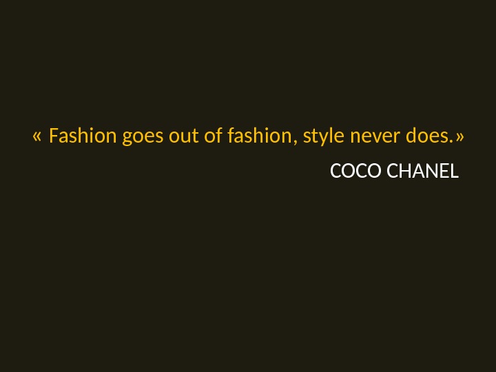 « Fashion goes out of fashion, style never does. » COCO CHANEL