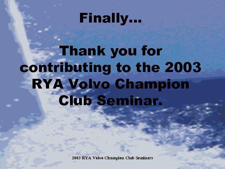 Finally… Thank you for contributing to the 2003 RYA Volvo Champion Club Seminars