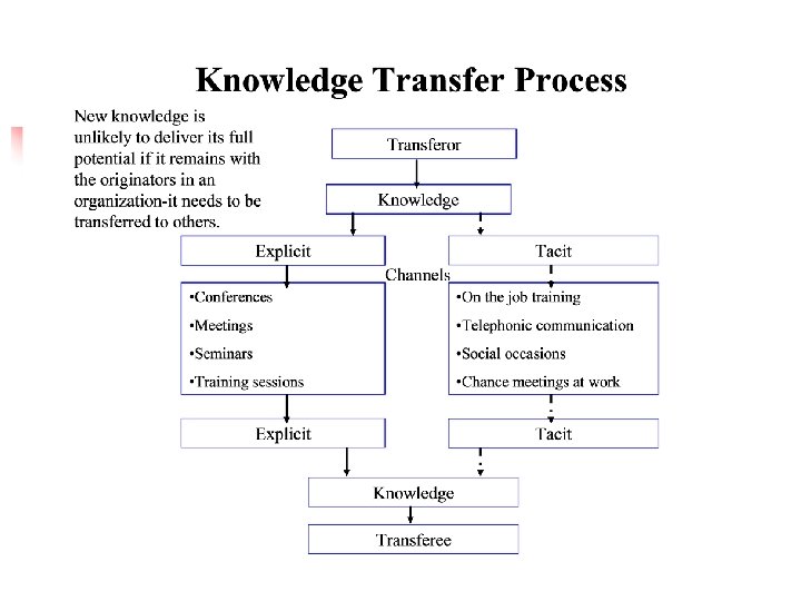Tacit Knowledge Transfer n n Knowledge, in particular tacit knowledge that are the keys often to deliver the sustainable competitive advantage because it is this part that competitors have trouble in replicating. To provide sustained competitive advantage, one needs tacit knowledge that is difficult for outsiders to copy as well as the ability to rapidly develop new knowledge.