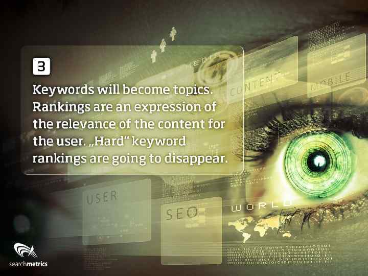 Content → Ranking → Traffic 1. Conserve Traffic – conventional SEO-Methods 2. New Traffic through fresh Content What‘s the best optimized website in the world? 112 www. searchmetrics. com 2/8/2018
