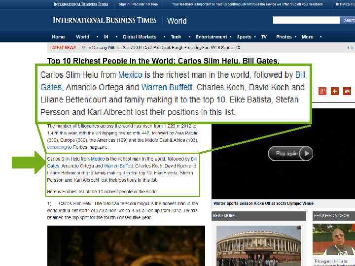 Who is the richest person in the world? Single Keyword ? Verb Entitity 1 Entity 2 Complex Entitity (1+2) Complex Query with several Entities Topic (Complex Entity)