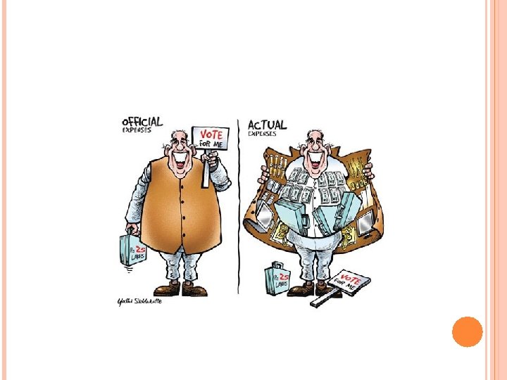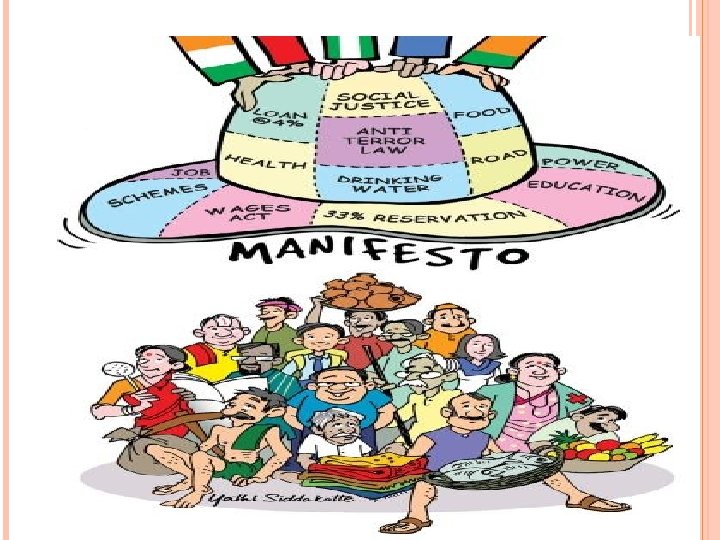 31. Distribution free books to the students, just before elections. 32. Free admission to children of influential voters of a locality in Engineering Collegemedical or college by run the candidate. 33. Distributing free cows or buffalos among voters before election. 34. Distributing free agriculture seeds and manures among the voters. 35. Distributing free solar lamps among the rural voters. 36. Distributing diaries, calendars, purse, T-shirt, sarees and vanity bags. 37. Using ‘Aarthiyas’ (commission agents) for distribution of cash among waiving farmers his or commission demanded form the farmers. 38. Cash given to religious leaders or leaders of a caste for ensuring votes of their followers. 39. Distribution of liquor, drugs, poppy husks among the