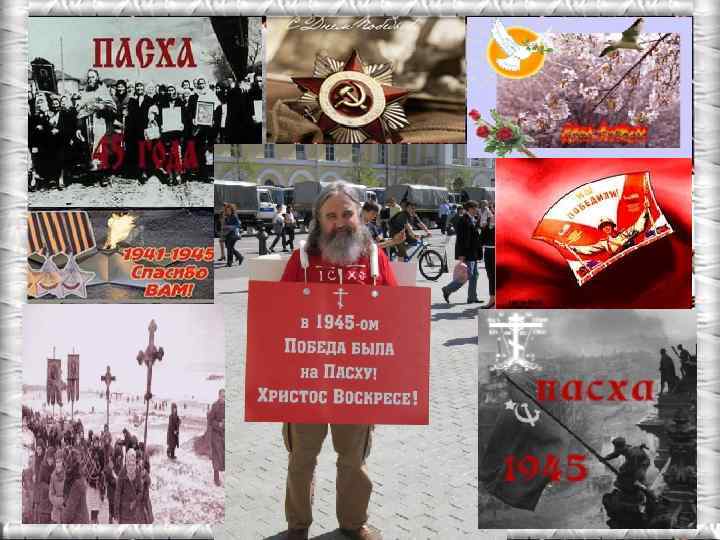 В послании Патриарха Московского и всея Руси Алексия I 6 мая 1945 года говорилось: «Пасхальная радость Воскресения Христова соединяется ныне со светлой надеждой на близкую победу правды и света над неправдой и тьмой… Свету и силе Христовой не возмогли противиться и препятствовать тёмные силы фашизма, и Божие всемогущество явилось над мнимой силой человеческой»