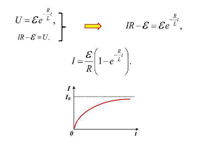 1. Исчезновение тока. При размыкании ключа ток в цепи убывает. Убывает магнитный поток, пронизывающий катушку. Это приводит к возникновению ЭДС индукции. Запишем закон Ома для случая, когда ключ разомкнут: где R - общее сопротивление цепи (катушки, лампы и резисторов). Разделяем переменные в дифференциальном уравнении:
