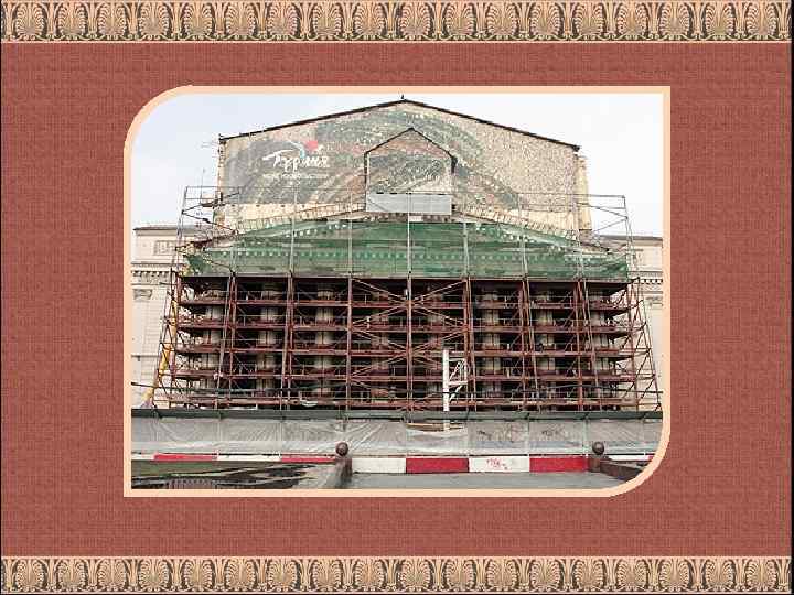 Историческое здание Большого театра было закрыто на реконструкцию со Эта реконструкция продлилась 2 июля 2005 года. по 28 октября 2011 г. Она возродила многие утраченные черты исторического облика знаменитого здания и вместе с тем поставила его в ряд самых технически оснащенных