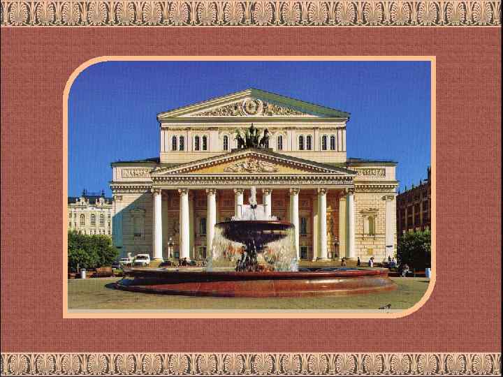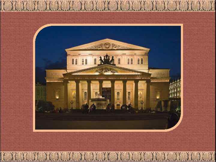 Сегодня Большой Театр считается лучшим и в то же время старейшим театром в России. Его главной задачей является обеспечение преемственности поколений и самого высокого уровня отечественных культуры и