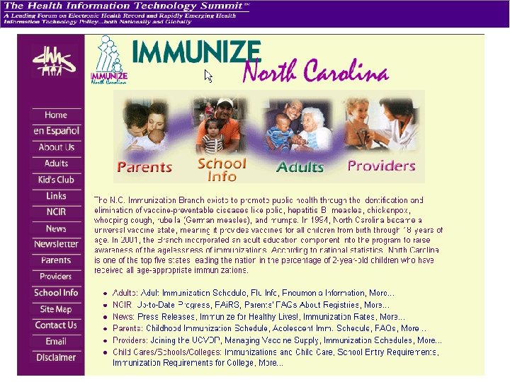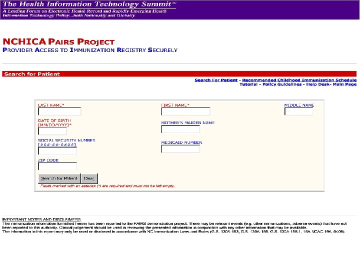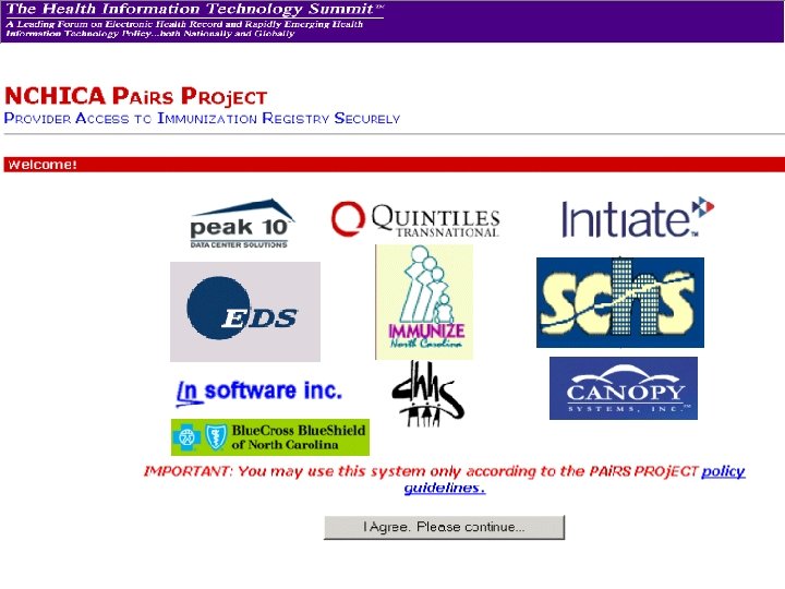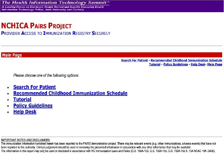 Benefits of the NC PAi. RS Project • Immediate and convenient access to records by public AND private providers – good will! • Experience with the Internet, security methods, and Web access • Expanded connections to private sector • Prepared private sector for speedy implementation of new registry • Secure Internet connectivity can lead to other PH applications such as automation of mandatory reporting, HAN alerts, etc.