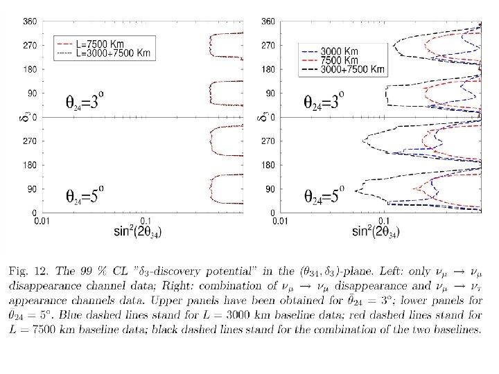 The new CP phase 3 can be probed Disappearence L=3000 km 1. Confusion between Disappearence 3000+7500 km Discovery L=7500 km Discovery 3000+7500 km Nu. Fact 50 Ge. V 99% CL Discovery L=3000 km