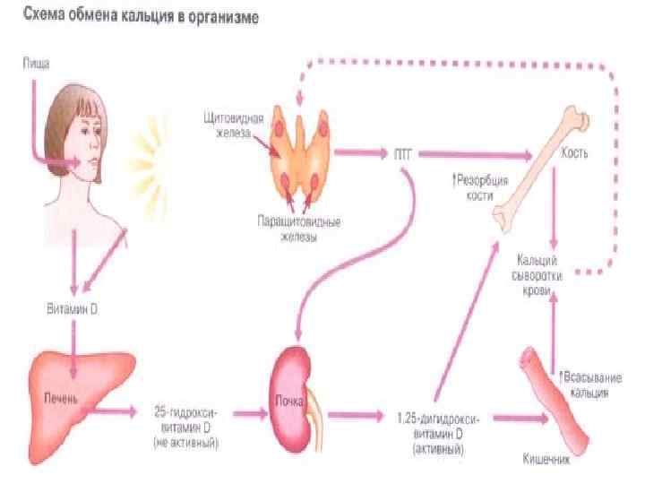 Регуляция обмена кальция (Витамин D 3) Витамин D 3 1. Образуется из холестерина, поступающего с 2. 3. 4. 5. пищей. В кишечнике - увеличивает синтез Са 2+транспортного белка. В костной ткани - стимулирует минерализацию ткани. Усиливает синтез коллагена. В почках - повышает реабсорбцию кальция и фосфатов.