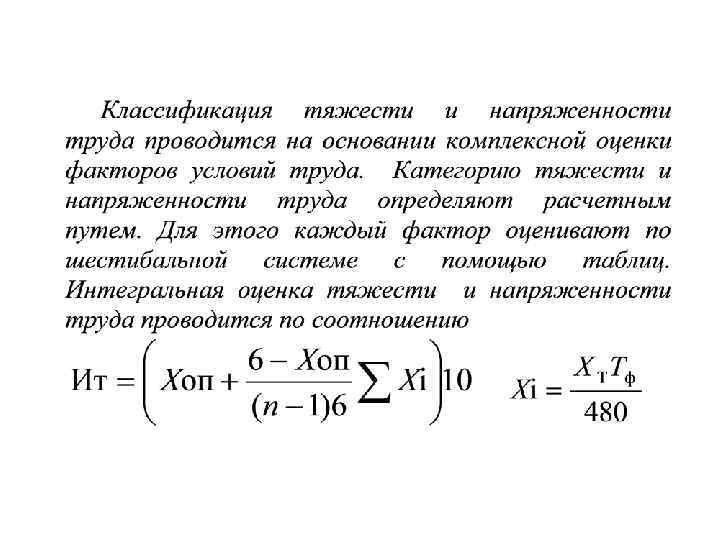 Тяжесть и напряженность труда • Тяжесть и напряженность труда характеризуются степенью функционального напряжения организма. При физическом труде оно может быть энергетическим, зависящим от мощности работы. При умственном труде оно может быть эмоциональным.
