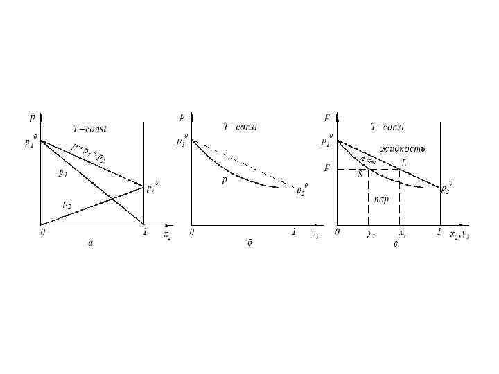 1) если , то . Поэтому при условии получаем , то есть пар богат более летучим компонентом; 2) чем больше значение α, тем значительнее отличаются составы равновесного пара и жидкости где